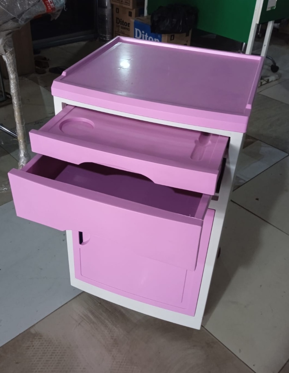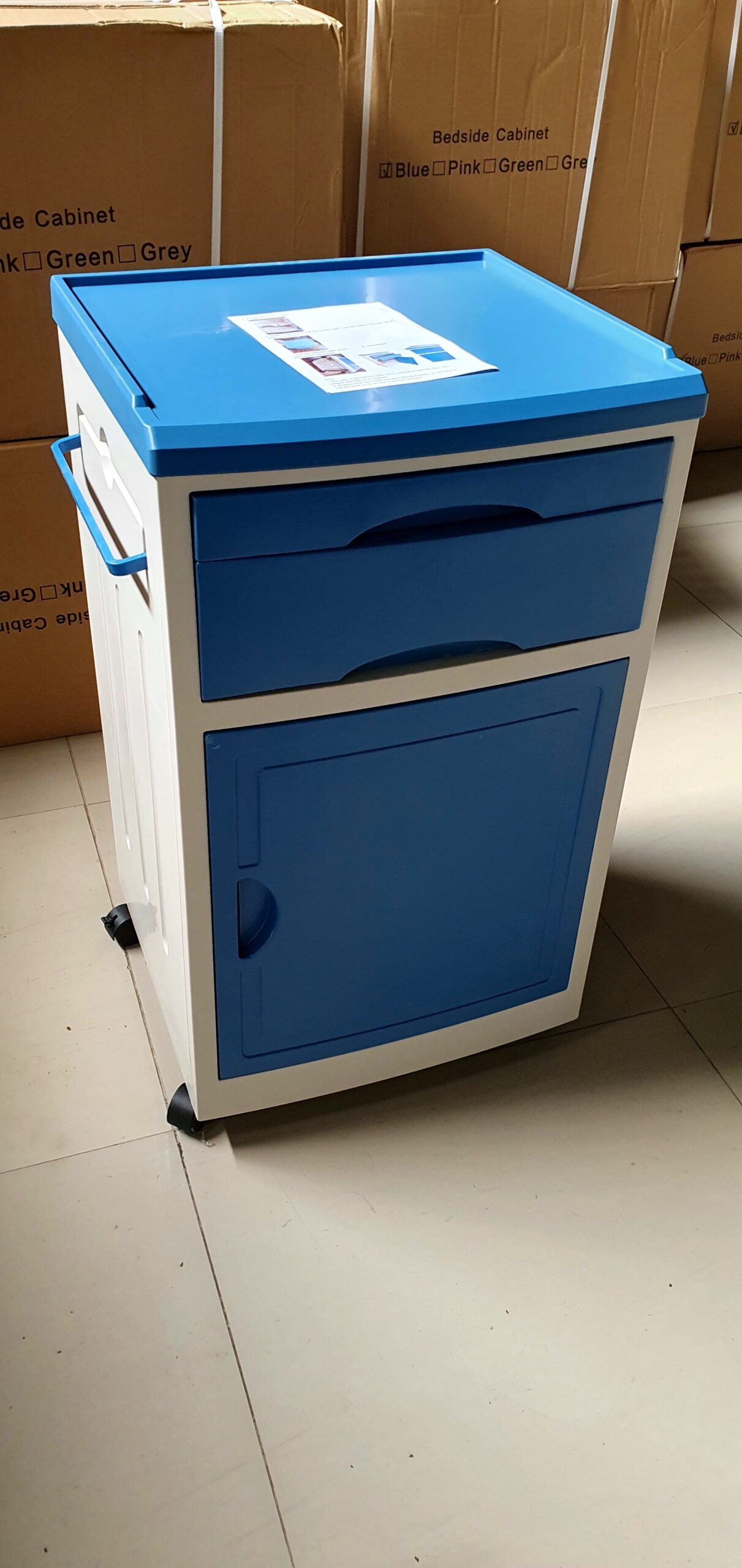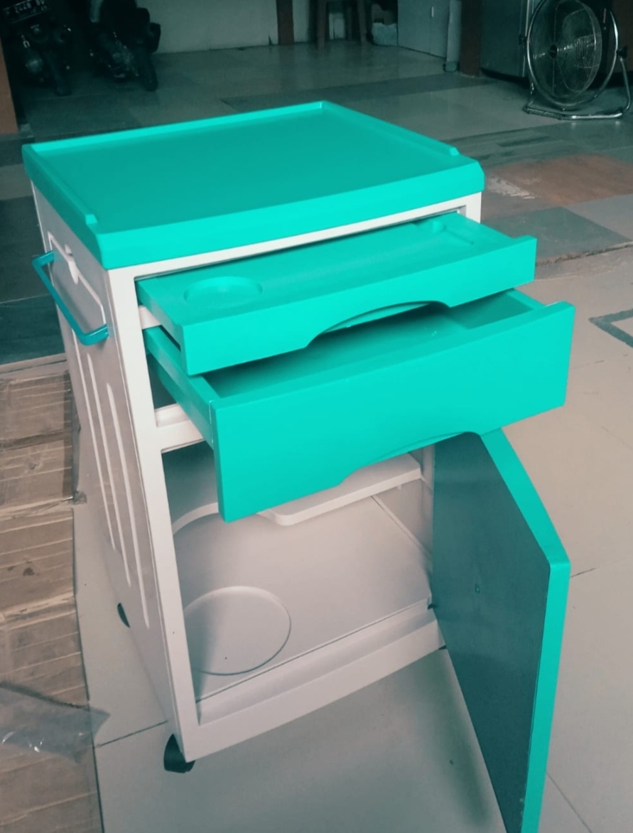 Bedside cabinet abs/Lemari Nakas Pasien berbahan plastikĀ dimensi 45 x 45 x 80 cm, roda 2 inchi. Produk import china. Terdapat mayo,laci, lemari kecil di dalam ada ambalan. Kemasan dalam kardus knock down perkitan sangat mudah.